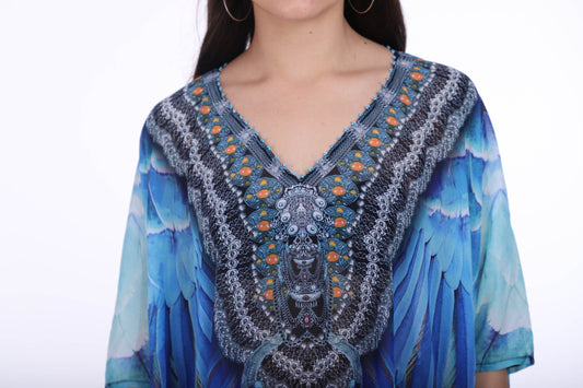 Blue Jay Scoop Neck Sheer Knee length Kaftan