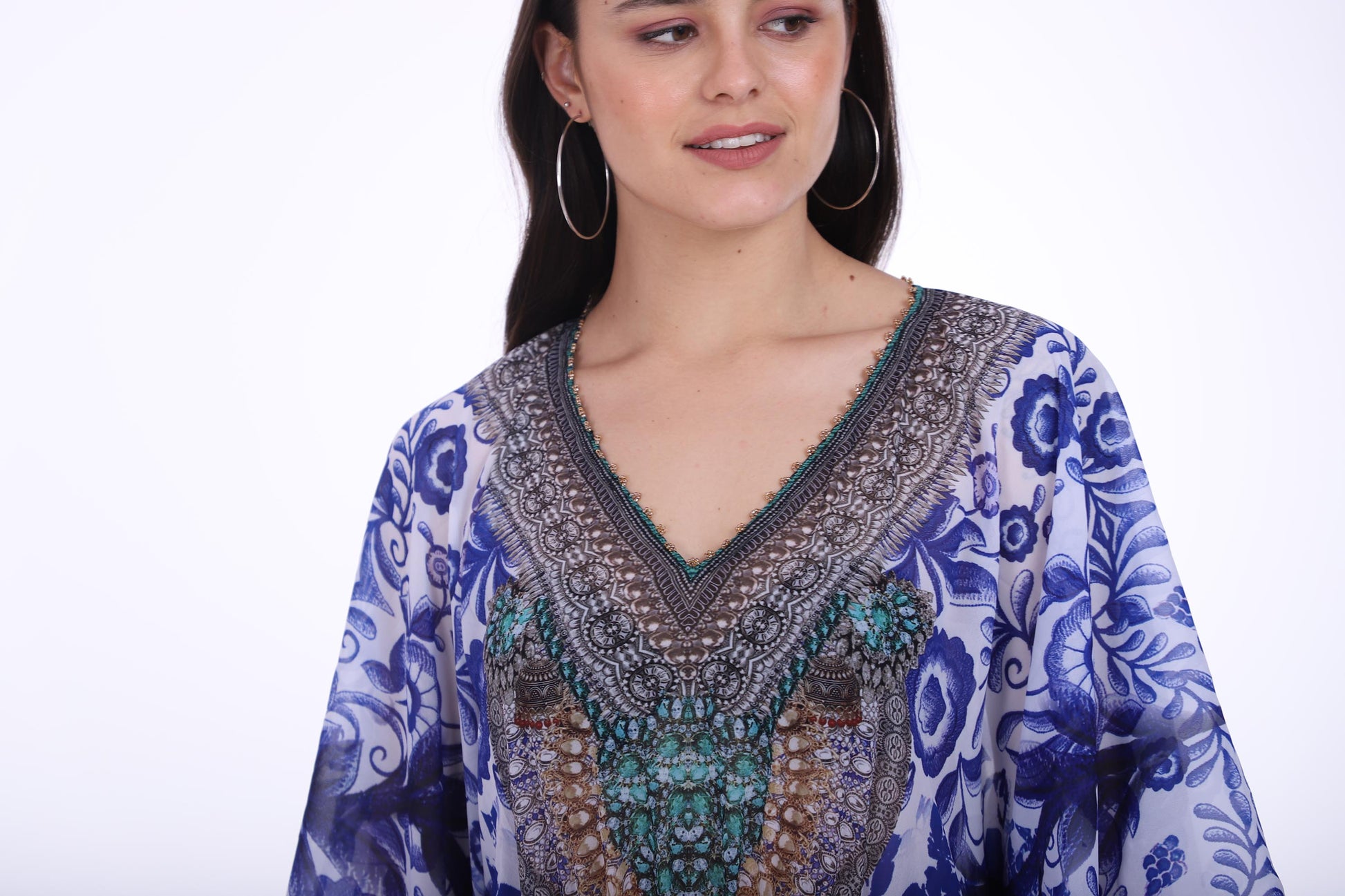 Indigo Vines Full length Resort wear Kaftan is a super soft & lightweight