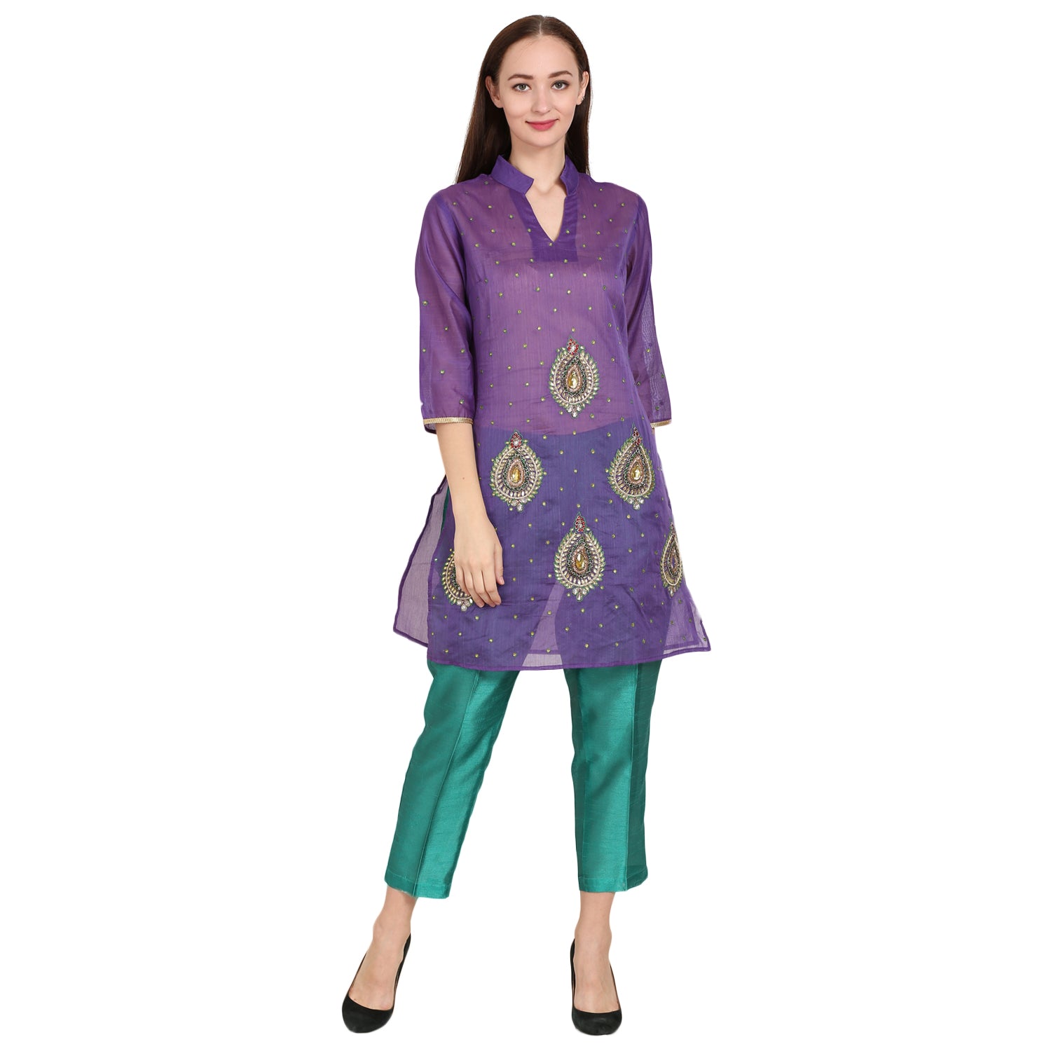 Rasagya Chanderi Cotton Kurti in Deep Purple